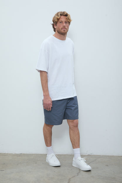 RELAXED FIT SHORTS WITH A CLEAN, UTILITY-INSPIRED FEEL. DESIGNED WITH SIDE POCKETS AND AN ELASTICATED WAISTBAND FOR ALL-DAY COMFORT. CRAFTED FROM JAPANESE COTTON DRILL FOR A STRUCTURED YET SOFT HAND FEEL. DETAILED WITH AN ADDITIONAL SIDE BACK PATCH POCKET FOR A FUNCTIONAL, ELEVATED TOUCH. FINISHED WITH AN EASY, ABOVE-KNEE LENGTH.
