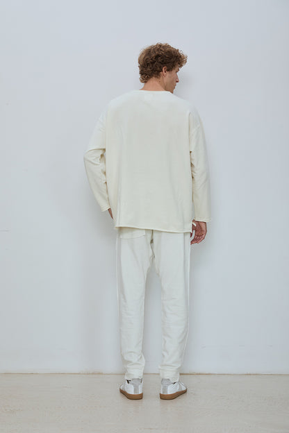 Relaxed crewneck sweatshirt in classic French terry. Soft loopback interior with a natural, lived in texture, finished with raw edge neckline detailing, dropped shoulders, and a straight hem. Designed for an easy, effortless fit.