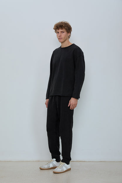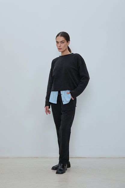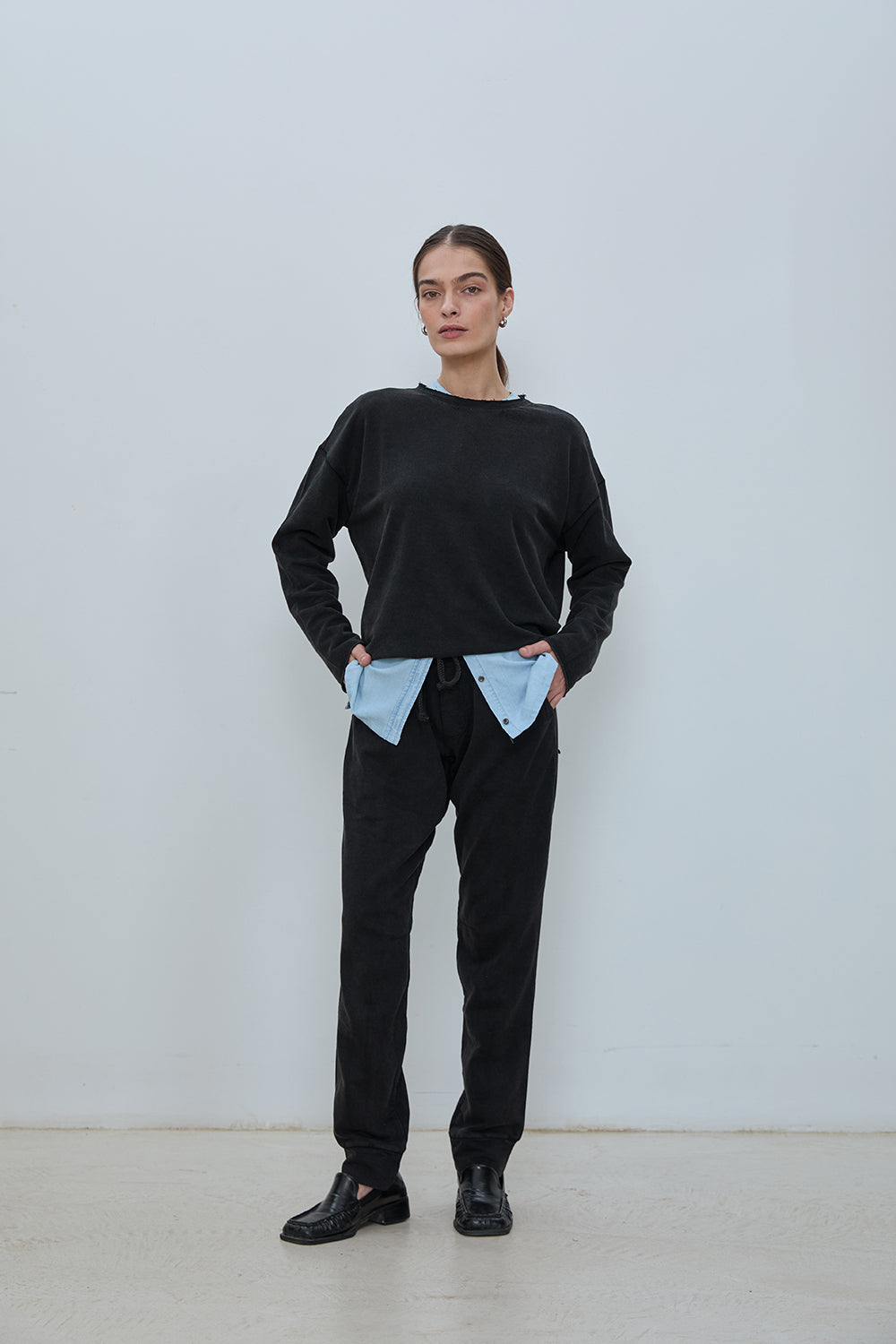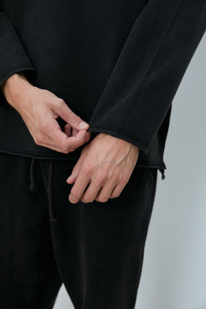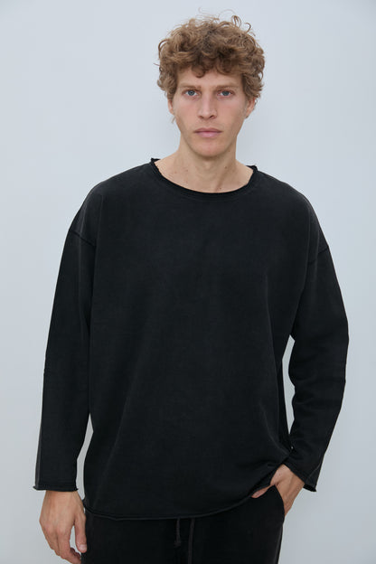 Relaxed crewneck sweatshirt in classic French terry. Soft loopback interior with a natural, lived in texture, finished with raw edge neckline detailing, dropped shoulders, and a straight hem. Designed for an easy, effortless fit.