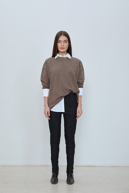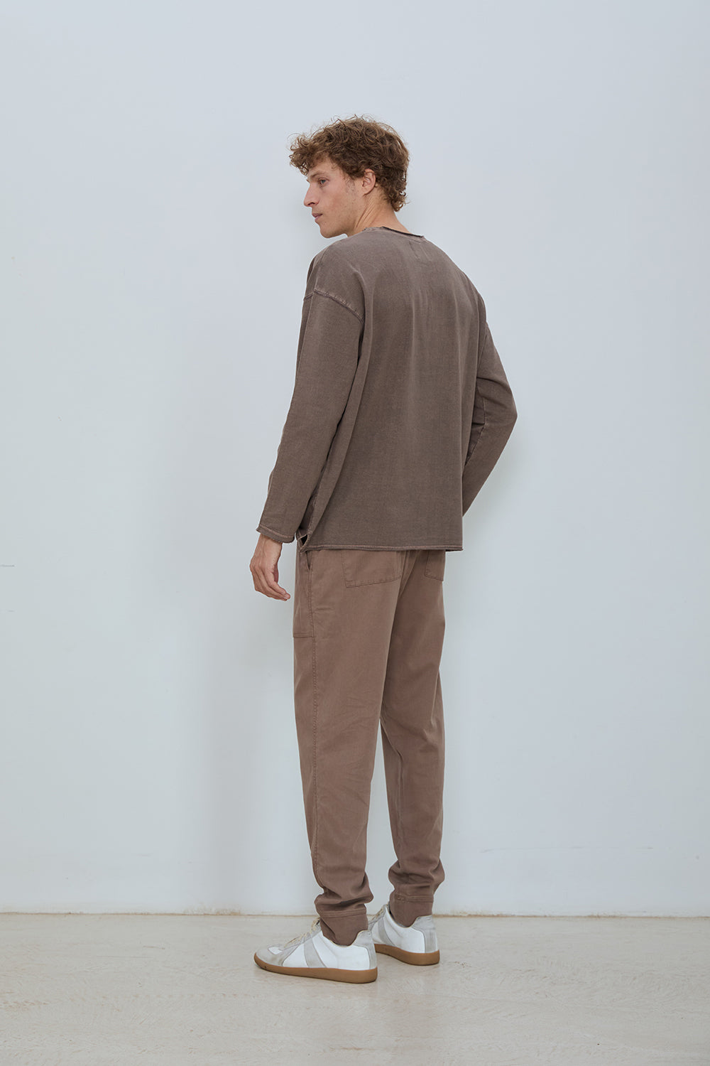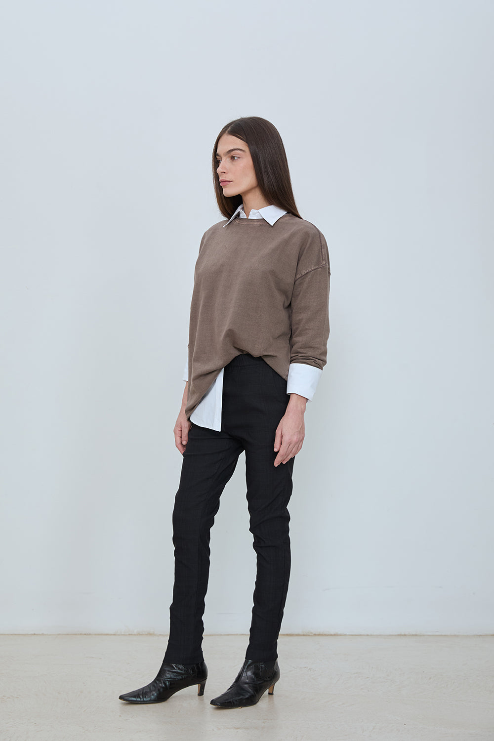 Relaxed crewneck sweatshirt in classic French terry. Soft loopback interior with a natural, lived in texture, finished with raw edge neckline detailing, dropped shoulders, and a straight hem. Designed for an easy, effortless fit.