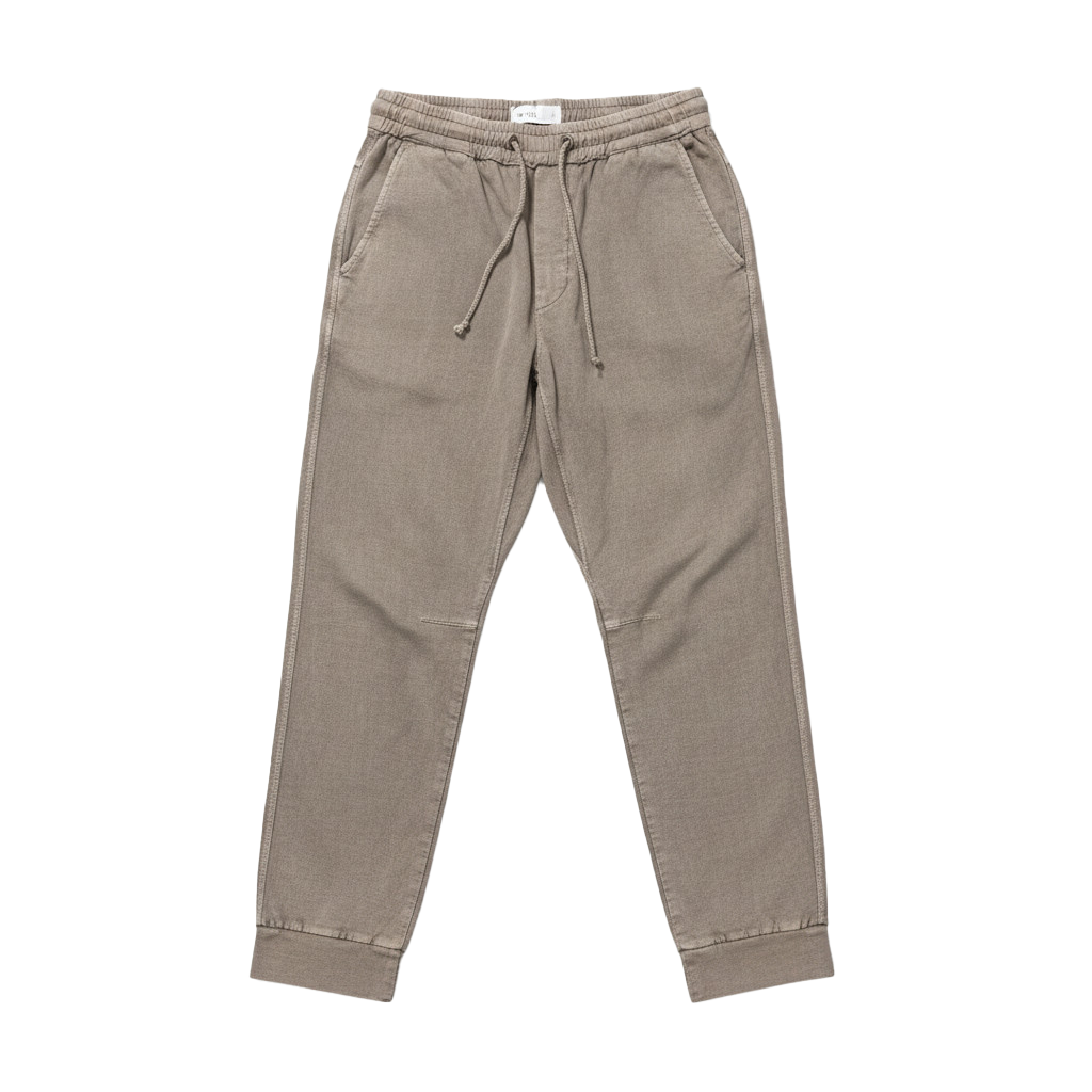 Mid rise sweatpant in classic French terry. Elastic waistband with long braided drawstrings, straight side pockets, and a tapered leg with a soft, relaxed finish. Pull on construction with no zipper or button.