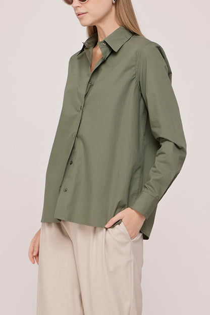Classic button down shirt cut from crisp woven cotton. Designed with a pointed collar, full button closure, long sleeves with structured cuffs, and a relaxed straight fit for an easy polished look.